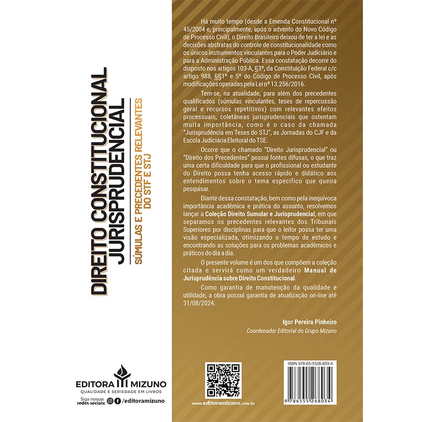 O universo jurídico brasileiro está em constante evolução, com o Livro Direito Constitucional Jurisprudencial - Súmulas e Precedentes Relevantes do STF e STJ, escrito por Vinícius Secco Zoponi e Igor Pereira Pinheiro e publicado pela Editora Mizuno, os profissionais e estudantes da área têm uma ferramenta inestimável para se manterem atualizados e profundamente informados sobre as nuances do Direito Constitucional e Direitos Humanos.