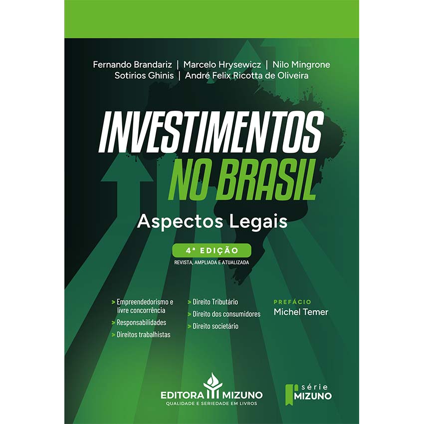 A 4ª edição de Investimentos no Brasil, publicada pela Editora Mizuno, é um guia essencial para empresários, advogados e investidores que desejam compreender a complexidade do cenário econômico e jurídico brasileiro. Escrito pelos autores — Fernando Brandariz, Marcelo Hrysewicz, Nilo Mingrone, Sotirios Ghinis e André Felix Ricota —, o livro oferece uma análise clara e objetiva sobre os principais desafios e oportunidades de se empreender no país.