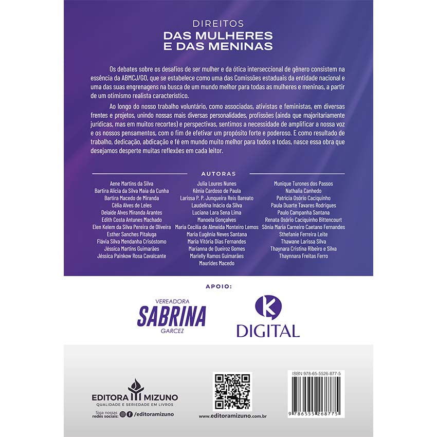 O livro "Direito das Mulheres e das Meninas", publicado pela Editora Mizuno, reúne contribuições de uma equipe diversificada e especializada em direitos femininos. Organizado por Renata Osório Caciquinho Bittencourt, Sônia Maria Carneiro Caetano Fernandes, Patrícia Osório Caciquinho e Maria Vitória Dias Fernandes, esta obra aborda a necessidade urgente de se entender e promover os direitos fundamentais das mulheres e meninas em nossa sociedade.