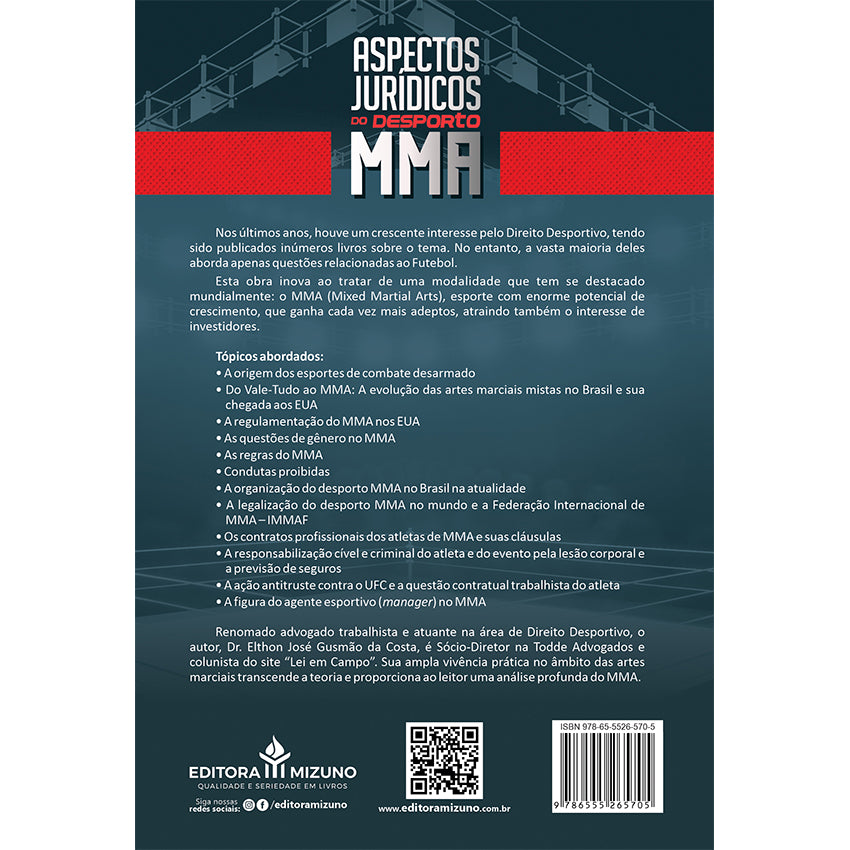Nos últimos anos, houve um crescente interesse pelo Direito Desportivo, tendo sido publicados inúmeros livros sobre o tema. No entanto, a vasta maioria deles aborda apenas questões relacionadas ao Futebol. Esta obra inova ao tratar de uma modalidade que tem se destacado mundialmente: o MMA (Mixed Martial Arts), esporte com enorme potencial de crescimento, que ganha cada vez mais adeptos, atraindo também o interesse de investidores.
