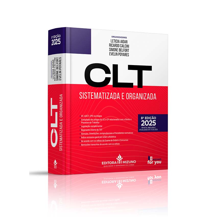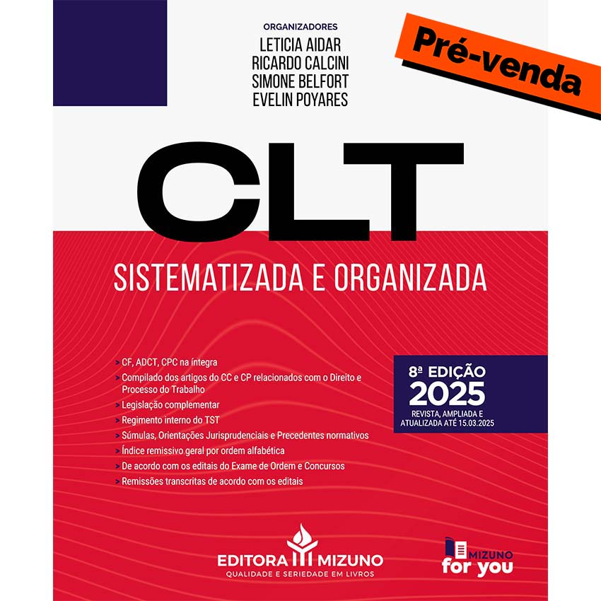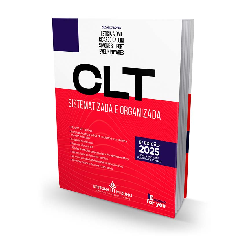 A CLT Sistematizada e Organizada - 8ª edição é uma obra essencial para profissionais e estudantes do Direito que buscam excelência, agilidade e profundidade em seus estudos e práticas jurídicas. Com curadoria criteriosa de Leticia Aidar, Ricardo Calcini, Simone Belfort e Evelin Poyares, e publicada pela Editora Mizuno, esta edição reforça seu compromisso com o ensino jurídico de qualidade e a aplicação prática da legislação trabalhista.