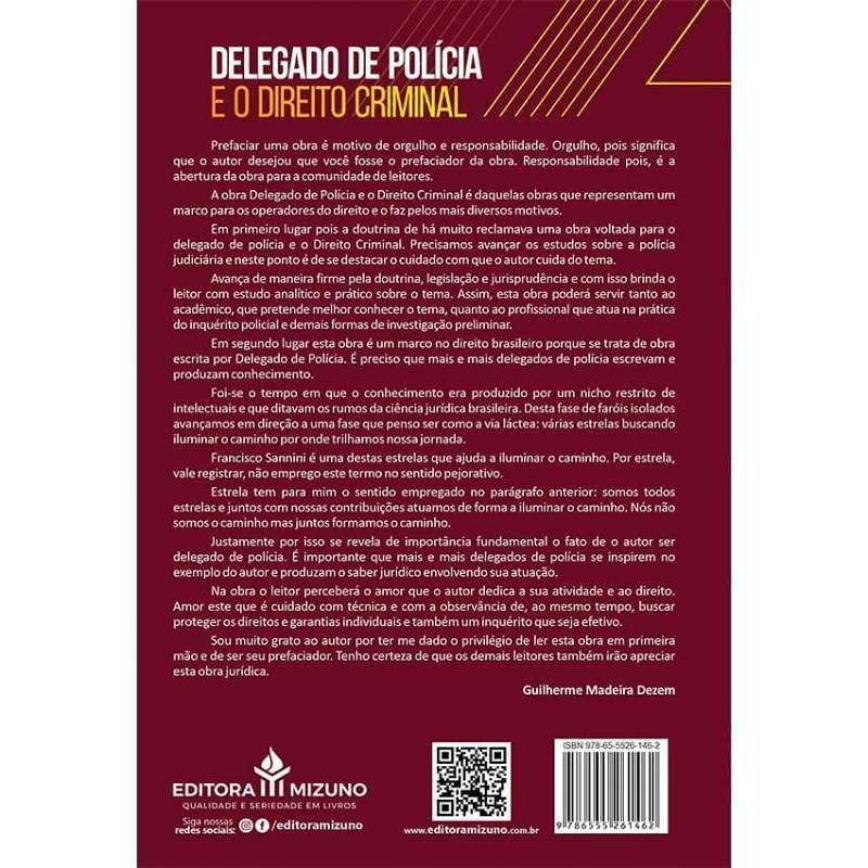 Prefaciar uma obra é motivo de orgulho e responsabilidade. Orgulho, pois significa que o autor desejou que você fosse o prefaciador da obra. Responsabilidade pois, é a abertura da obra para a comunidade de leitores. A obra Delegado de Polícia e o Direito Criminal é daquelas obras que representam um marco para os operadores do direito e o faz pelos mais diversos motivos.