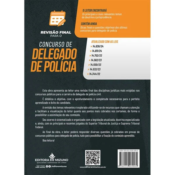 O Kit Delegado de Polícia 03 é a escolha ideal para candidatos que buscam uma preparação completa, eficiente e direcionada. Com dois livros que cobrem desde a revisão final até a preparação para a prova oral, este kit é uma ferramenta poderosa para garantir a sua aprovação. Invista em seu futuro com os materiais certos e esteja pronto para todas as etapas do concurso.