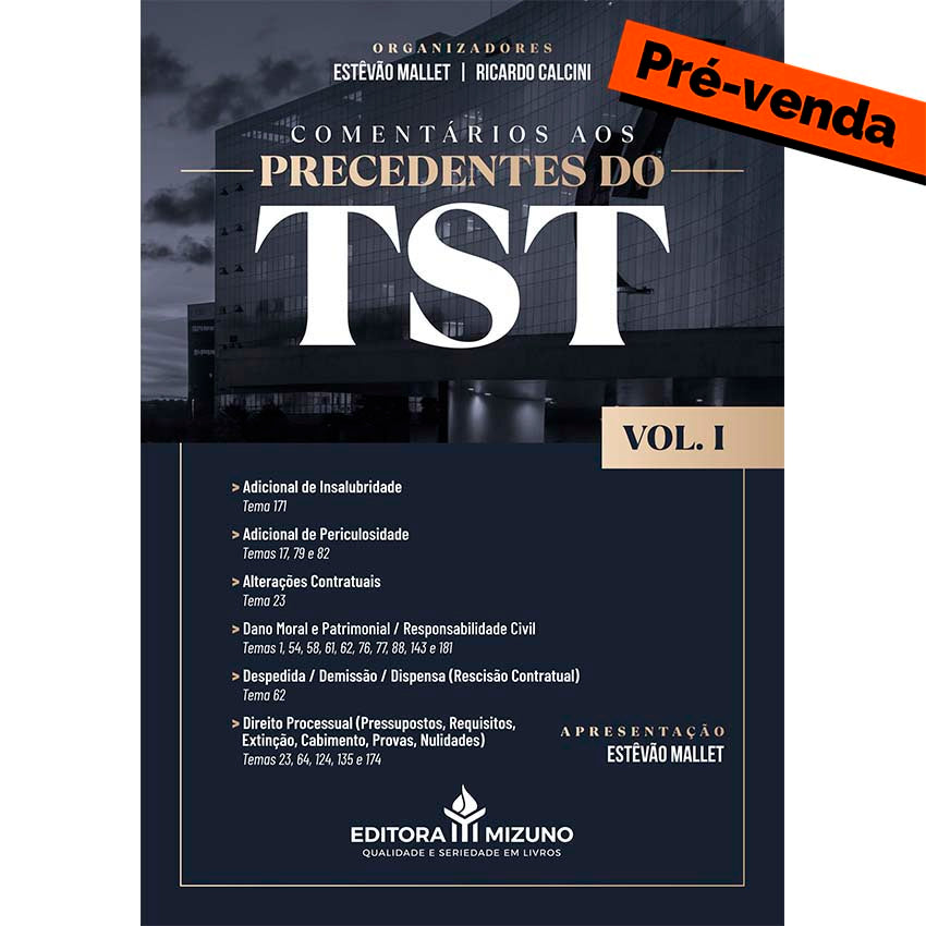 A obra Comentários aos Precedentes do TST – Vol. 1, publicada pela Editora Mizuno e organizada por Estêvão Mallet e Ricardo Calcini, apresenta uma análise criteriosa e atualizada dos precedentes qualificados do Tribunal Superior do Trabalho. Em um cenário jurídico marcado pela crescente valorização da jurisprudência vinculante, esta coletânea oferece um panorama aprofundado dos principais entendimentos consolidados pelo TST, contribuindo para a atuação segura, técnica e fundamentada de todos aqueles que operam o Direito do Trabalho. Trata-se de um instrumento imprescindível para compreender o alcance normativo das teses fixadas, sua ratio decidendi e suas consequências práticas no cotidiano forense.