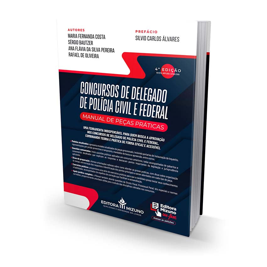 O livro "Concursos de Delegado de Polícia Civil e Federal 4ª edição" é uma ferramenta indispensável para aqueles que buscam se preparar de maneira eficaz e segura para os concursos de Delegado de Polícia Civil e Federal. Elaborado por autores de renome, Sérgio Bautzer, Maria Fernanda Costa, Ana Flávia da Silva Pereira e Rafael de Oliveira, e publicado pela Editora Mizuno, esta obra é reconhecida pela sua abordagem prática e pelo conteúdo atualizado, que reflete as mais recentes alterações legislativas e jurisprudenciais.