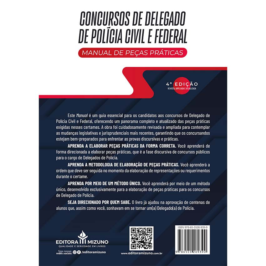 Este Manual é um guia essencial para os candidatos aos concursos de Delegado de Polícia Civil e Federal, oferecendo um panorama completo e atualizado das peças práticas exigidas nesses certames. A obra foi cuidadosamente revisada e ampliada para contemplar as mudanças legislativas e jurisprudenciais mais recentes, garantindo que os concursandos estejam bem-preparados para enfrentar as provas discursivas e práticas.