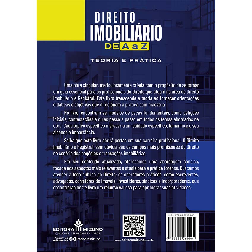 O Direito Imobiliário de A a Z 5ª edição, de autoria de Júlio Cesar Sanchez, é uma obra indispensável para os profissionais que desejam aprofundar seus conhecimentos em Direito Imobiliário e Registral. Publicado pela Editora Mizuno, este livro reúne conteúdo abrangente e atualizado, integrando teoria e prática para oferecer uma abordagem completa e didática.