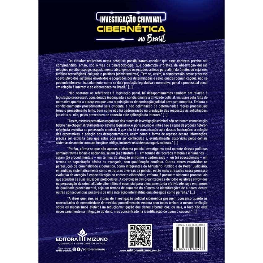 O livro "Investigação Criminal Cibernética no Brasil", escrito por Emerson Wendt e publicado pela Editora Mizuno, aborda com profundidade a complexa realidade das investigações criminais no ambiente cibernético brasileiro. Esta obra se apresenta como uma análise robusta e detalhada dos sistemas legislativos e normativos que regem o ciberespaço no Brasil, além de discutir as dificuldades enfrentadas pelos operadores do direito e órgãos de segurança pública neste contexto.