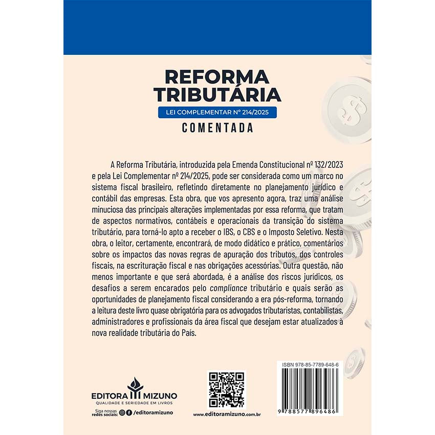 A obra Reforma Tributária - Lei Complementar nº 214/2025 Comentada, publicada pela Editora Mizuno e escrita por Renaldo R. Júnior, consolida-se como um guia técnico, jurídico e operacional de excelência para todos os profissionais que precisam compreender e aplicar a nova legislação tributária no Brasil.