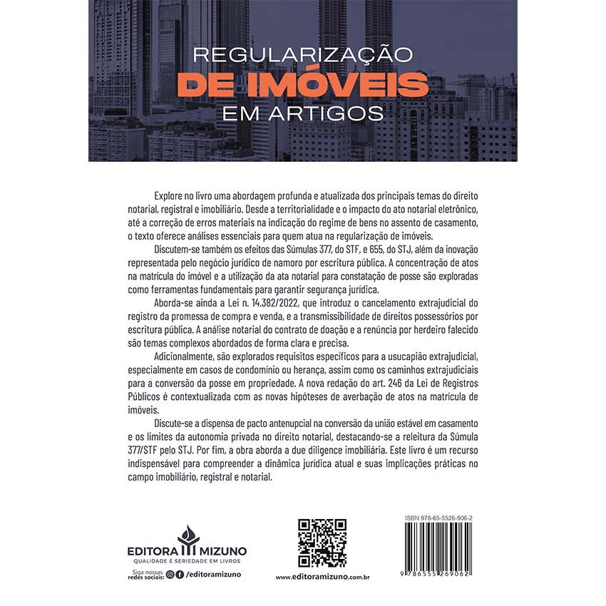 Regularização de Imóveis em Artigos - 2ª edição é uma obra indispensável para quem busca entender a fundo os processos e legislações que regem a regularização de imóveis no Brasil. Organizado por Letícia Franco Maculan Assumpção e publicado pela Editora Mizuno, este livro oferece uma análise abrangente e detalhada, tornando-se uma referência essencial para profissionais da área.