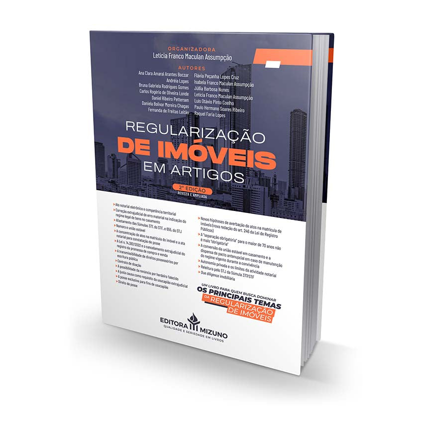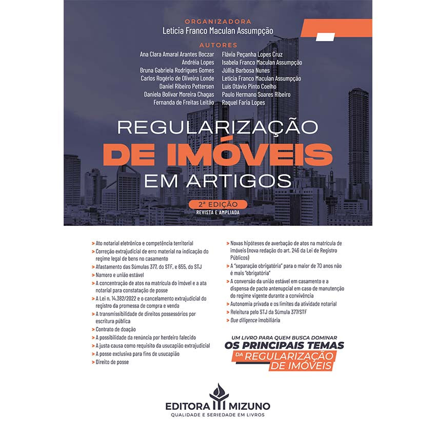 A segunda edição do livro Regularização de Imóveis em Artigos é uma obra essencial para profissionais e estudiosos do direito notarial, registral e imobiliário. Organizada por Letícia Franco Maculan Assumpção e publicada pela Editora Mizuno, esta obra oferece uma abordagem profunda e atualizada sobre os principais temas relacionados à regularização de imóveis no Brasil.
