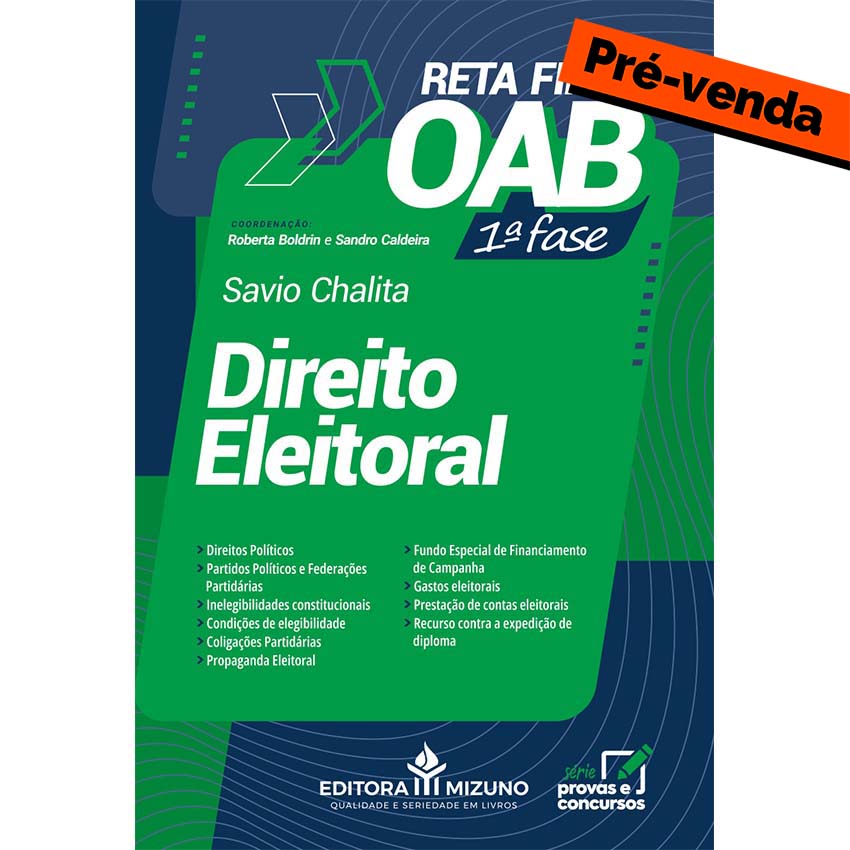 A escolha dos temas para compor esta obra foi feita com base nos assuntos que foram cobrados nas últimas edições (lembremos que Direito Eleitoral passou a ser cobrado a partir do 38° Exame de Ordem Unificado), seja em eleitoral ou até mesmo na disciplina de Direito Constitucional, com quem mantém íntima relação de verdadeira dependência.