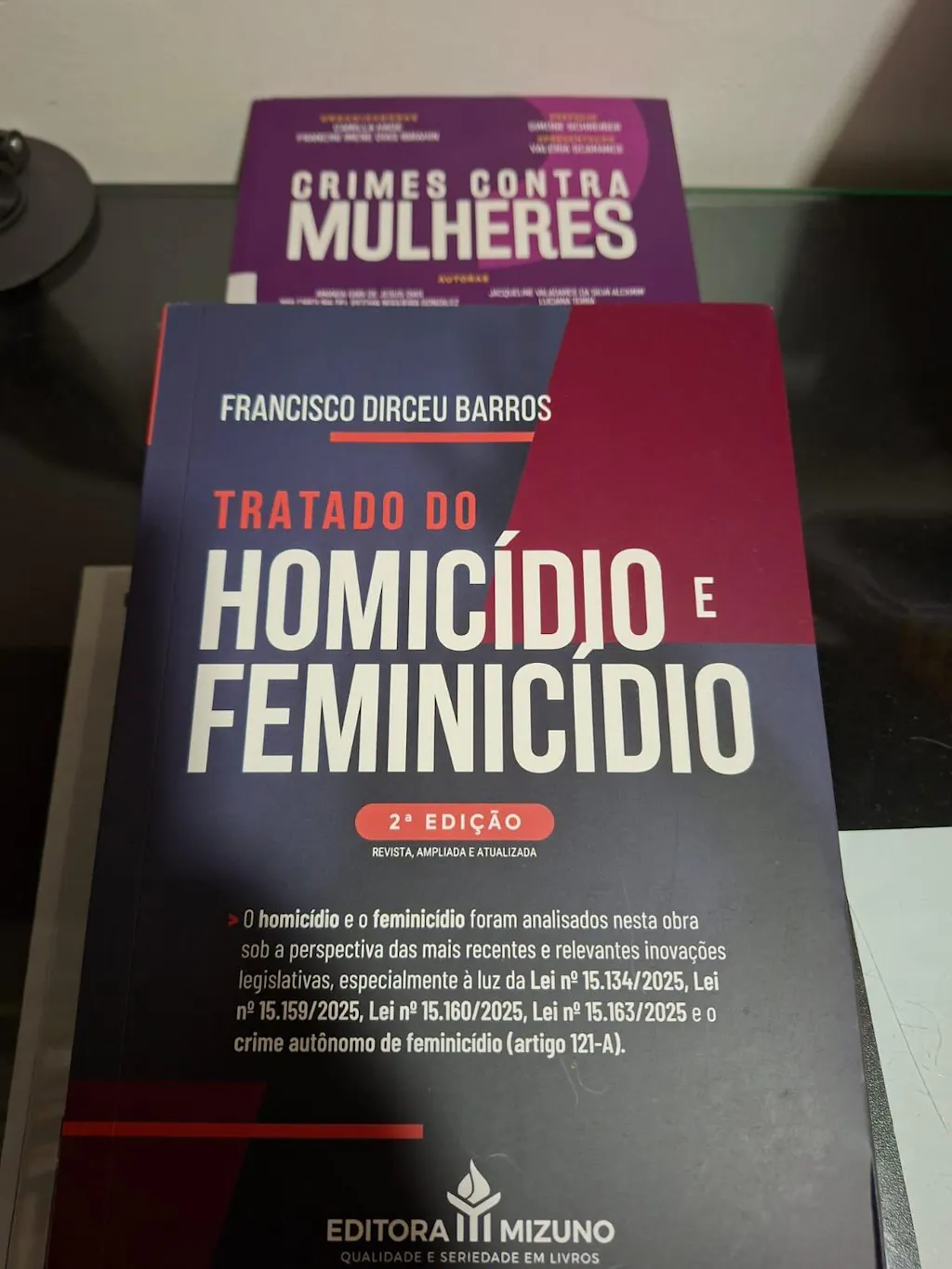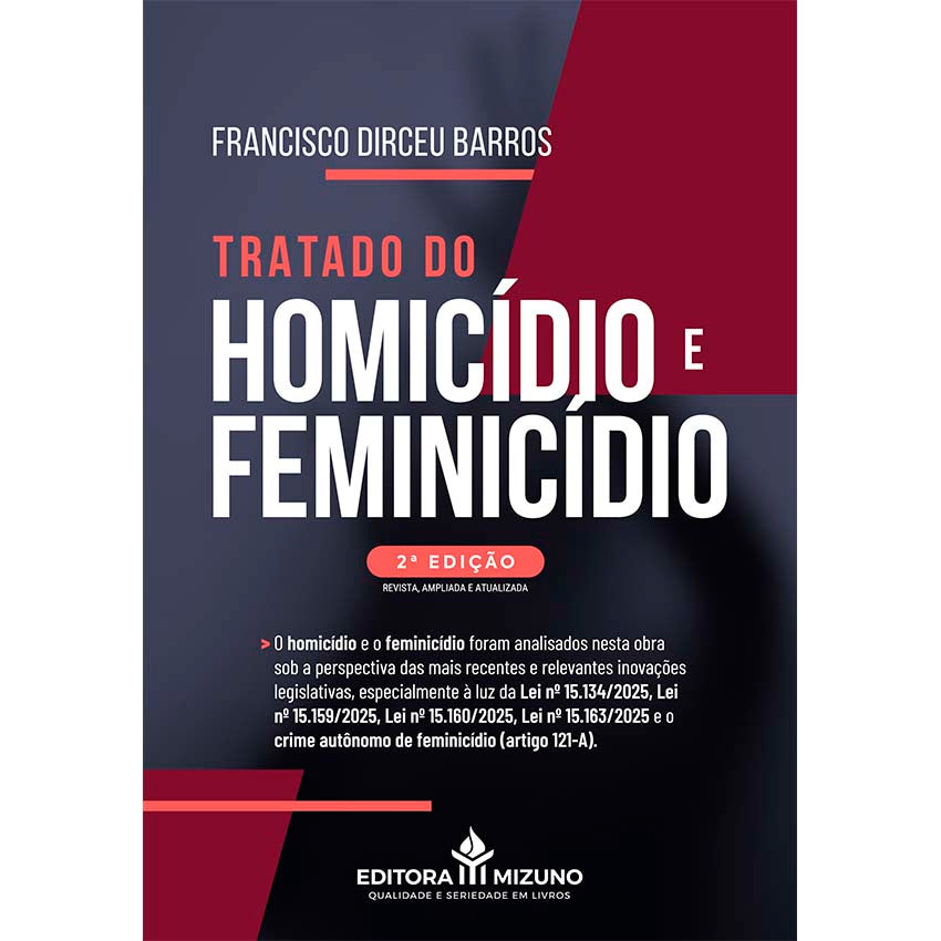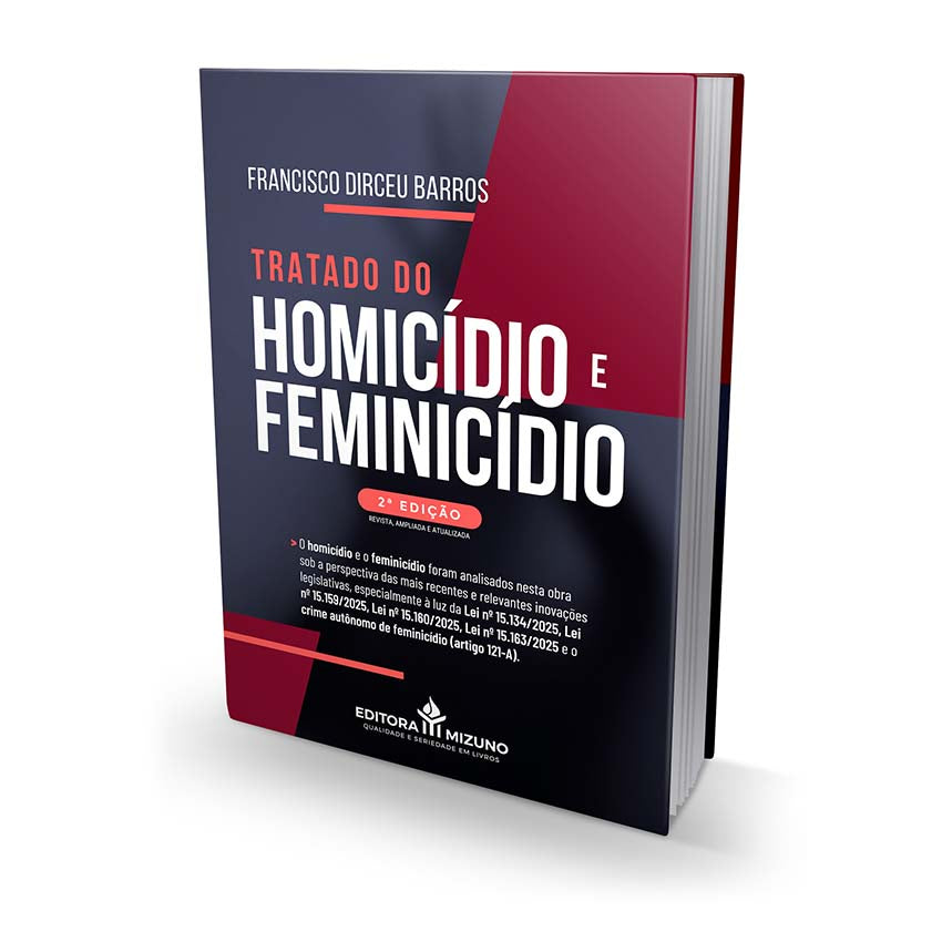 Com base em mais de duas décadas de experiência prática no Ministério Público, o Promotor de Justiça Francisco Dirceu Barros apresenta a 2ª edição do Tratado do Homicídio e Feminicídio, uma das mais completas e atualizadas obras sobre os crimes contra a vida no Brasil. Publicado pela Editora Mizuno, o livro examina de forma crítica, técnica e acessível as principais discussões doutrinárias e jurisprudenciais sobre o homicídio, com destaque especial para o feminicídio, conforme definido pelas reformas introduzidas pelas Leis nº 15.134/2025, 15.159/2025, 14.994/2024 e 8.072/1990.