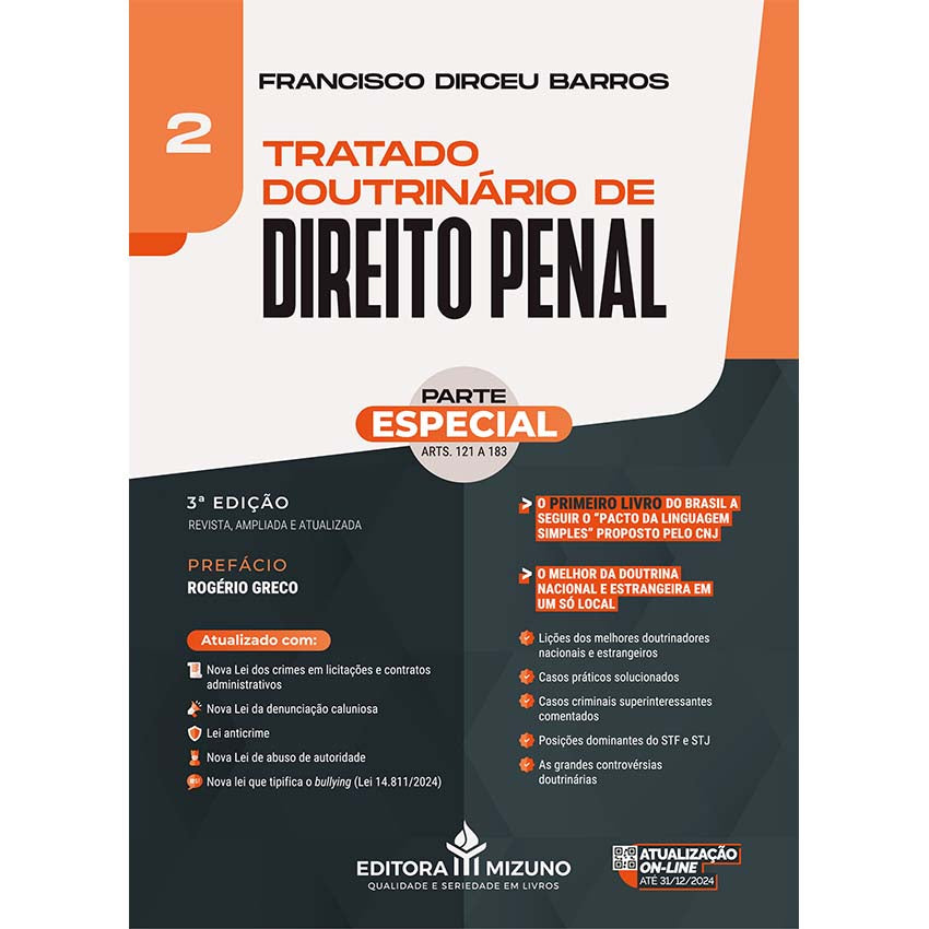 O Livro Tratado Doutrinário de Direito Penal - Volume 2 - 3ª edição, publicado pela Editora Mizuno, é uma referência indispensável para estudantes, professores e profissionais do Direito Penal. Autoria de Francisco Dirceu Barros, este volume se destaca pela profundidade de análise e pela abordagem contemporânea dos temas tratados.