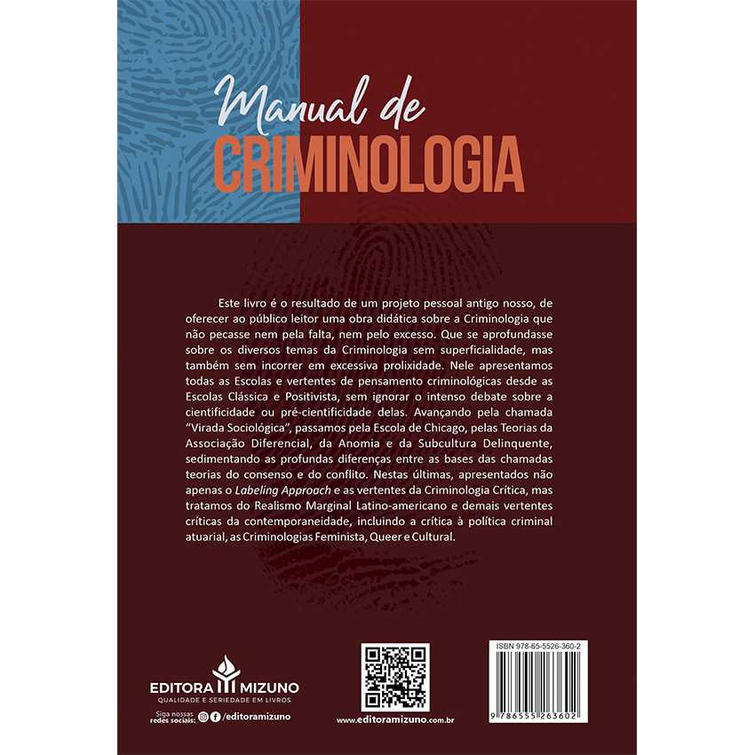 Este livro é o resultado de um projeto pessoal antigo nosso, de oferecer ao público leitor uma obra didática sobre a Criminologia que não pecasse nem pela falta, nem pelo excesso.