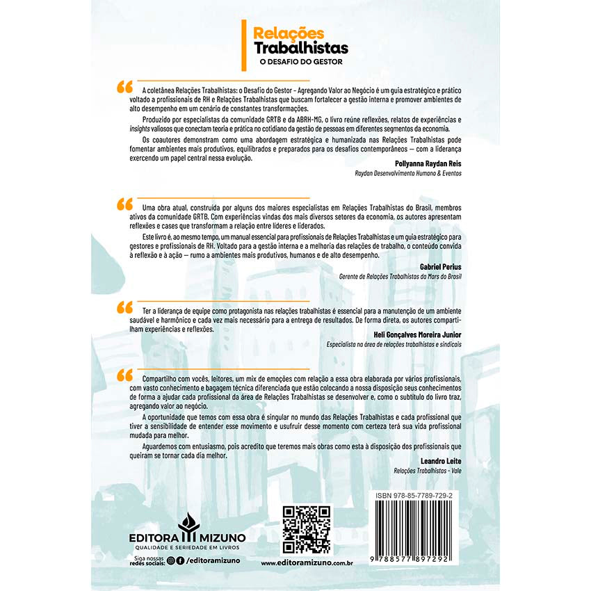 Se você busca construir uma liderança sólida, fomentar ambientes de confiança, impulsionar resultados e alinhar gestão de pessoas aos objetivos do negócio, esta leitura é essencial. Com o selo da Editora Mizuno e a expertise de autores consagrados, esta coletânea é um investimento no crescimento da sua carreira e na maturidade das relações laborais da sua organização.